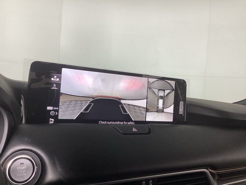 The leather seats in the vehicle are a must for buyers looking for comfort, durability, and style. The installed navigation system will keep you on the right path. This Mazda CX-90 is pure luxury with a heated steering wheel. It stays safely in its lane with Lane Keep Assist. Start it from inside with remote start. This unit's blind spot monitor enhances safety. This Mazda CX-90 offers Apple CarPlay for seamless connectivity. See what's behind you with the back up camera on this 1/2 ton suv. The vehicle features a hands-free Bluetooth® phone system. The vehicle offers Android Auto for seamless smartphone integration. This unit is equipped with all wheel drive. This vehicle has a 6 Cyl, 3.3L high output engine. Maintaining a stable interior temperature in the vehicle is easy with the climate control system. This Mazda CX-90 embodies class and sophistication with its refined white exterior. Enjoy the convenience of the power liftgate on this unit.