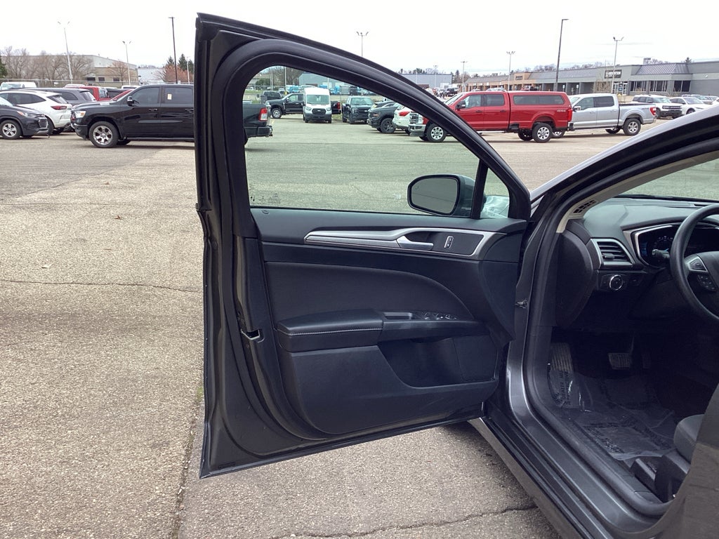 The vehicle stays safely in its lane with Lane Keep Assist. Protect this Ford Fusion from unwanted accidents with a cutting edge backup camera system. Bluetooth® technology is built into this mid-size car, keeping your hands on the steering wheel and your focus on the road. This model has a 4 Cyl, 1.5L high output engine. With the keyless entry system on this Ford Fusion you can pop the trunk without dropping your bags from the store. The vehicle projects refinement with a racy metallic gray exterior. The Ford Fusion is front wheel drive. Anti-lock brakes are standard on the vehicle. Light weight alloy wheels on this vehicle are the perfect compliment to a stylish body. The traction control system on this unit instantly senses tire slippage and executes minute power adjustments to maintain traction at all speeds.