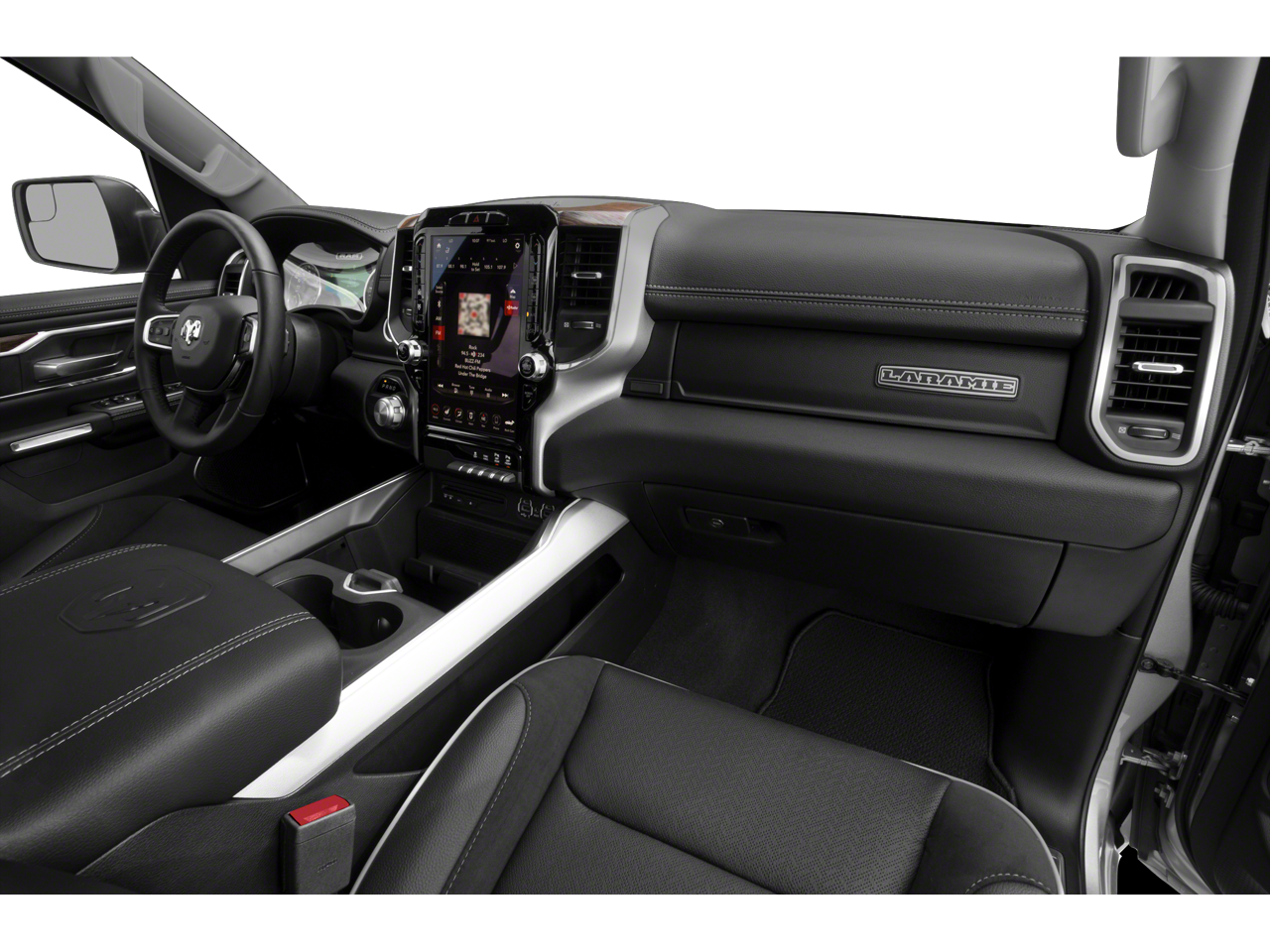 Quick Order Package 25H Laramie. Laramie Level 1 Equipment Group: Remote Tailgate Release; Auto High Beam Headlamp Control; Blind Spot and Cross Path Detection; Rain Sensitive Windshield Wipers; ParkSense Front/rear Park Assist with Stop; Tailgate Ajar Warning Lamp; Foam Bottle Insert (door Trim Panel); Rear 60/40 Folding Split Recline Seat. Sport Appearance Package: 275/55R20 OWL All Season Tires; Leather Trimmed Bucket Seats; Body Color Exterior Mirrors; Black Interior Accents; Body Color Premium Power Mirrors; Sport Performance Hood; Body Color Front Bumper; Sport Decal; Body Color Door Handles; Body Color Rear Bumper with Step Pads; 20" X 9" Premium Painted Wheels with Inserts; Grille Surround 3 Body Color Tex 2 Black. Uconnect 12 Radio with Navigation. Dual-Pane Panoramic Sunroof. Leather Trimmed Bucket Seats. RamBox Cargo Management System. Anti-Spin Differential Rear Axle. ParkSense Front/rear Park Assist with Stop. Granite Crystal Met CC. Granite Crystal Met CC. Rear Wheelhouse Liners. 3.92 Rear Axle Ratio. **Equipment listed is based on original vehicle build and subject to change. Please confirm the accuracy of the included equipment by calling the dealer prior to purchase.**
