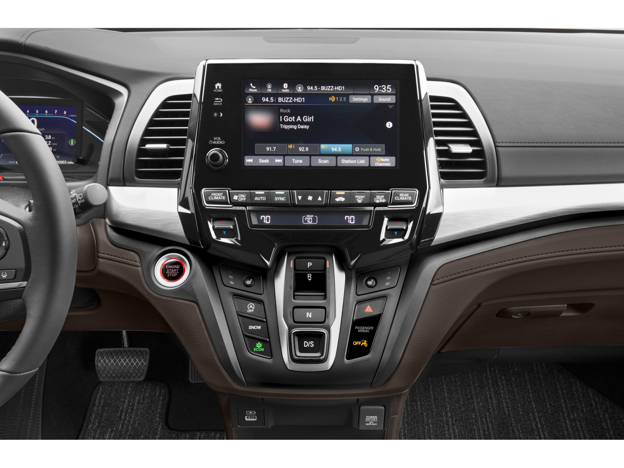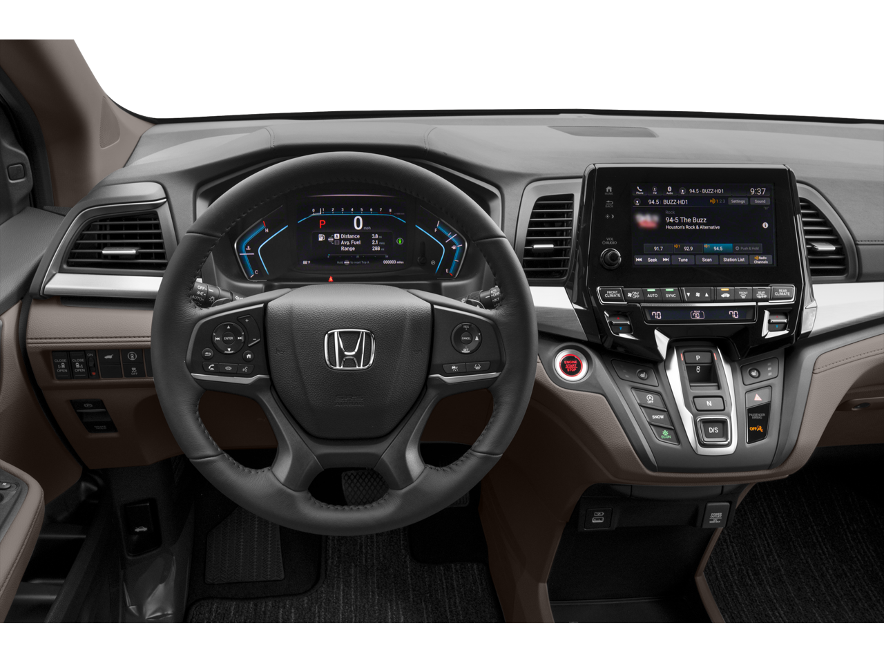 - Radio: 160-Watt AM/FM/HD/SiriusXM Audio System -inc: 7 speakers including subwoofer, Speed-Sensitive Volume Compensation (SVC), Bluetooth® HandsFreeLink, Bluetooth® streaming audio, MP3/auxiliary input jack, Radio Data System (RDS), SMS text message function, 2.5-amp USB audio interface port in center console, 2.5-amp USB charging port in front console, (2) 2.5-amp USB charging ports in second row, CabinControl remote compatibility, 8" display audio w/high-resolution electrostatic touch-screen and customizable feature settings, HondaLink, Apple CarPlay, Android Auto, illuminated steering wheel-mounted audio controls and black fin-type roof-mounted antenna, All SiriusXM services require a subscription, sold separately by SiriusXM after the trial period, If you decide to continue service, the plan you choose will automatically renew at the then-current rates, Fees and taxes apply, See the SiriusXM Customer Agreement & Privacy Policy at www.siriusxm.com for full terms and how to cancel, which includes calling 1-866-635-2349, Available in the 48 contiguous U.S, and D.C, Some services and features are subject to device capabilities and location restrictions, All fees, content and features are subject to change, SiriusXM, Pandora and all related logos are trademarks of Sirius XM Radio Inc, and its respective subsidiaries