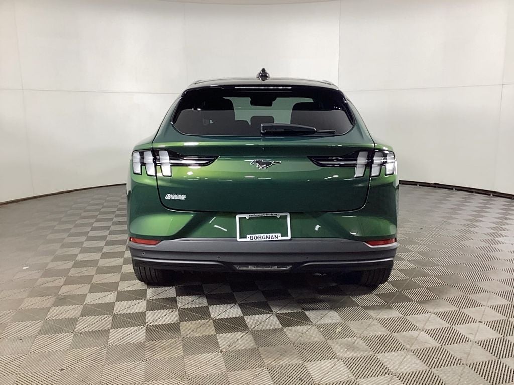 Borgmans Used Car Center of Grand Rapids brings you this low-mileage, eruption green 2025 Ford Mustang Mach-E Premium, a refined all-electric four door crossover that combines performance, luxury, and advanced technology. Powered by an all-wheel-drive electric system, the Mach-E Premium delivers responsive handling and confident traction in all weather conditions. Inside, it offers seating for up to five passengers with perforated ActiveX seating surfaces that balance comfort and durability. The heated front bucket seats and heated steering wheel enhance warmth on cold mornings, while the panoramic fixed glass roof floods the interior with light, creating an open, airy feel. The cabin emphasizes both technology and entertainment. A Bang Olufsen sound system provides exceptional audio quality for media played through USB or USB-C devices, ensuring high-fidelity sound throughout the vehicle. At the center of the dashboard, the SYNC touchscreen with navigation integrates driving data, entertainment options, and connected services with intuitive operation. From the exterior, the Mach-E Premium AWD stands out with 19-inch bright aluminum wheels with painted pockets, blending aerodynamic design and sophistication. Together, these features create a vehicle that merges the Mustangs legendary spirit with modern electric innovation, offering premium style, comfort, and connectivity.