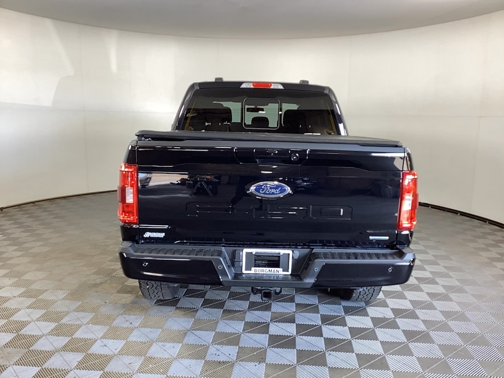 Borgman’s Used Car Center of Grand Rapids brings you this low-mileage, black 2023 Ford F-150 XLT, a four door crew cab pickup truck that delivers a balanced mix of capability, comfort, and modern tech. Powered by a 2.7L EcoBoost® V6 engine paired with four-wheel drive, it provides strong performance and confident handling both on and off the road. A Class IV trailer hitch receiver makes it ready for towing tasks, while the spacious SuperCrew cabin comfortably seats five passengers.  Inside, the XLT trim features durable cloth seating with available heated front bucket seats for added comfort. A remote start system adds convenience, while the interior layout emphasizes passenger space and everyday practicality.  Adding a touch of style, the Sport Appearance Package enhances the exterior with matching trim elements and striking 18-inch gloss black wheels. On the tech side, the F-150 is equipped with SYNC touchscreen infotainment with an integrated navigation system. The system supports music playback through USB or USB-C connections, keeping it versatile for modern devices.