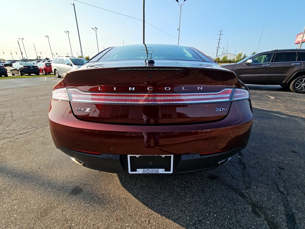 Borgman’s Used Car Center of Holland brings you this classy, red 2015 Lincoln MKZ Hybrid Reserve, a four door luxury sedan that combines efficient hybrid performance with premium comfort and technology. Powered by a 2.0L hybrid engine paired with a smooth CVT transmission and front-wheel drive, it delivers refined and quiet driving dynamics while maximizing fuel economy.  Inside, the MKZ Hybrid Reserve offers a spacious cabin with seating for five, featuring perforated leather-appointed upholstery, power-adjustable front bucket seats with heating and ventilation, and an airy panoramic roof that enhances the upscale atmosphere. For entertainment, passengers can enjoy the high-quality THX sound system, capable of playing music from both CDs and USB-connected devices, alongside the Sync touchscreen interface equipped with an integrated navigation system.  Stylishly designed on the outside, the MKZ features 19-inch polished aluminum wheels with painted pockets, further highlighting its sleek, modern profile. Overall, this model blends luxury, efficiency, and advanced features into a comfortable and technologically rich package.